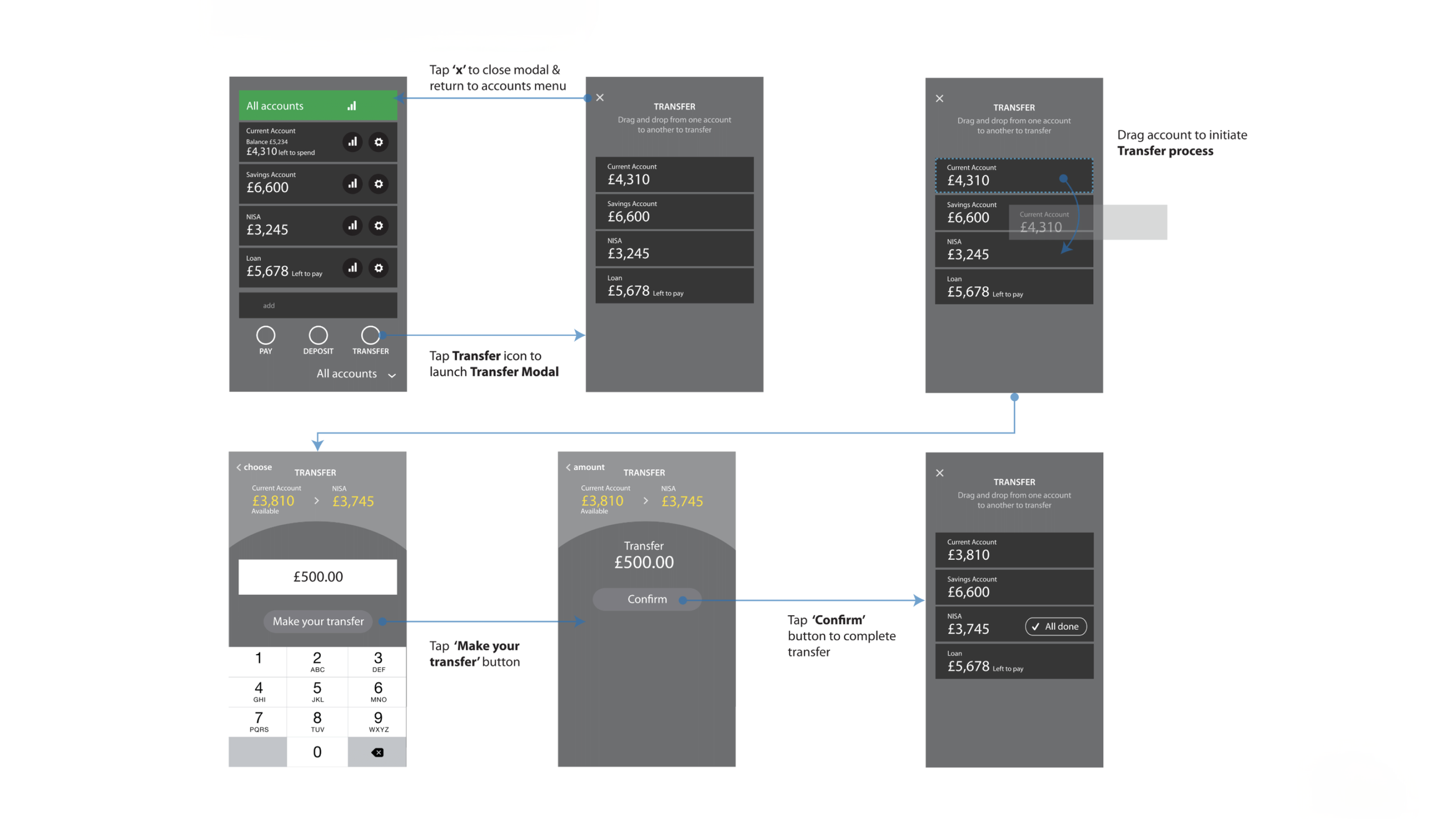 Once the initial design direction was established, we tested a prototype across phone and tablet with five customers. The response to the brand, aesthetics, and UX was overwhelmingly positive. Users recognised the app as a step change from traditional banking systems, one that brought an “Apple like” focus on quality, personalisation, and a frictionless user experience.